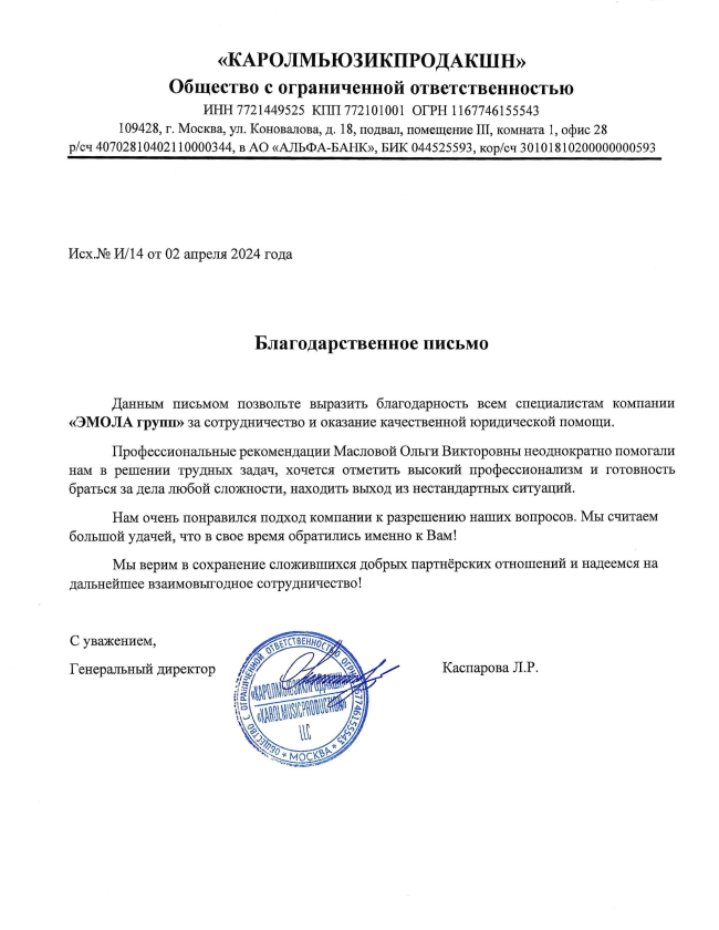 СОУЧРЕДИТЕЛЬ «Emola Group»